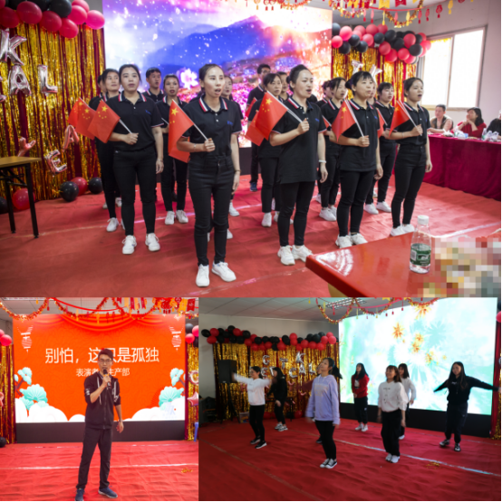 第二环节,年会节目。这个节目充分展现了迪克人德智体美共同发展,在这些节目里,让大家眼前一亮的是大合唱《大中国》、《我和我的祖国》在祖国70周年之际,迪克人纷纷自发响应祖国号召,拥护祖国,每当歌词与旋律一遍遍响起时,我们总能想起那些祖国从无到有,从落后到富强的壮举,总能让我们回想那一幕幕成功与骄傲,那一幕幕付出与汗水铸就的诗篇,太多太多,汇聚心头,汇成了个人的骄傲、迪克人的骄傲,祖国的骄傲,在这一刻,迪克和祖国无法分割,每个人在内心告诫自己,也要像以前的一个英雄一样,创新、改变、突破,才能让迪克更强,祖国更强!!